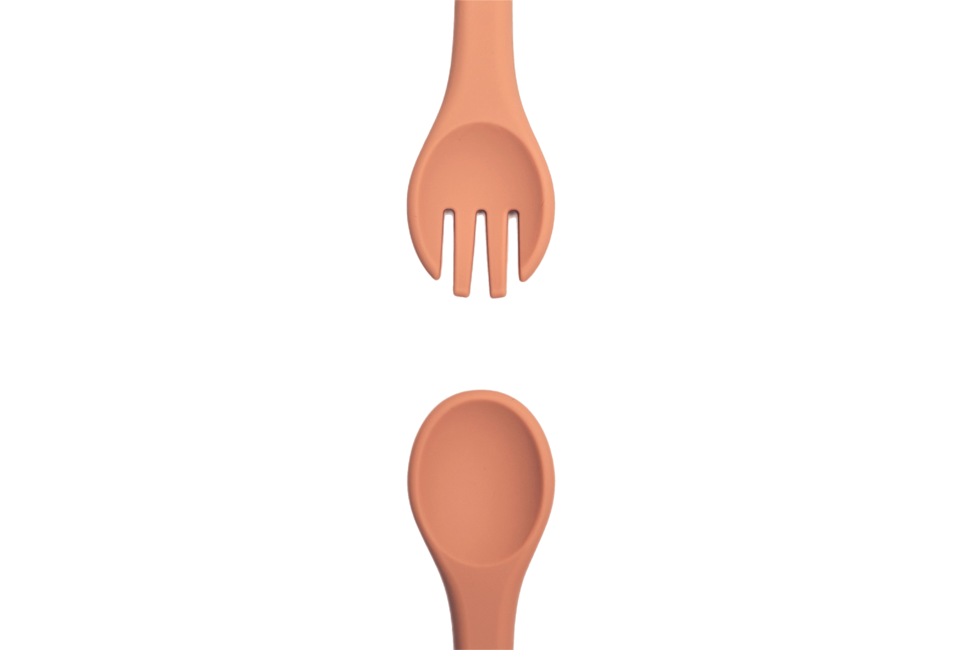 • 1 set de utensilios: cuchara y tenedor de silicona, suaves y flexible.