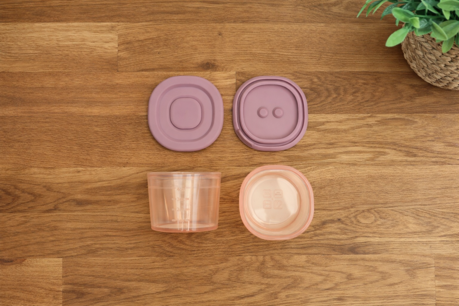 • 2 recipientes de silicona para almacenar comida (120 ml de capacidad)