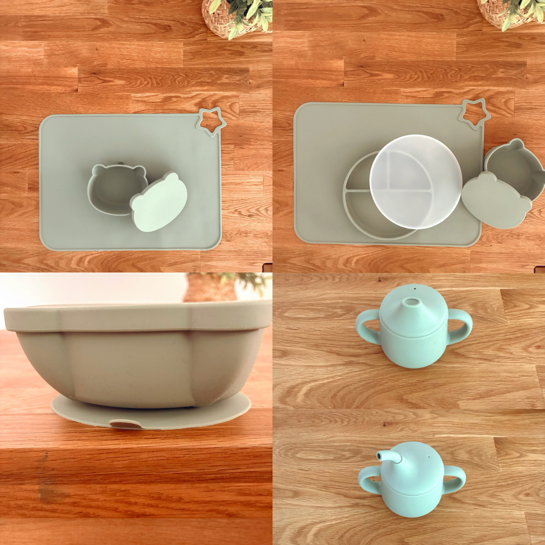 La vajilla de silicona libre de BPA de Olmi es perfecta para manos pequeñas, fácil de limpiar y diseñada para comidas seguras y divertidas