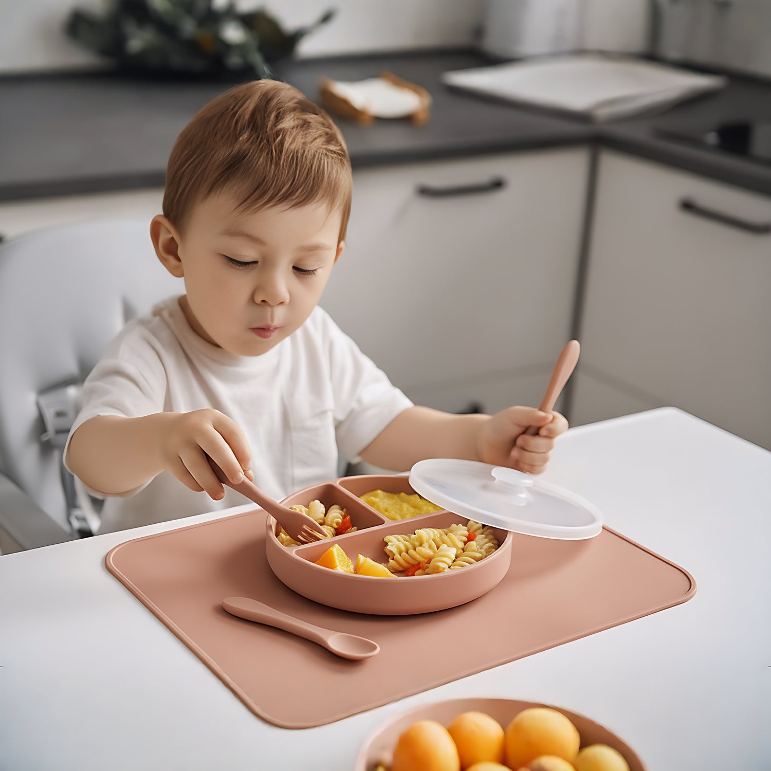 La vajilla de silicona libre de BPA de Olmi convierte la hora de la comida en una experiencia divertida. Diseñada para manos pequeñas, fomenta la independencia y hace que cada comida sea alegre. Disfruta de la felicidad en cada bocado.